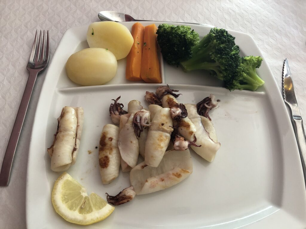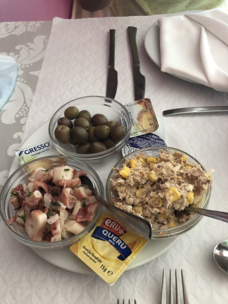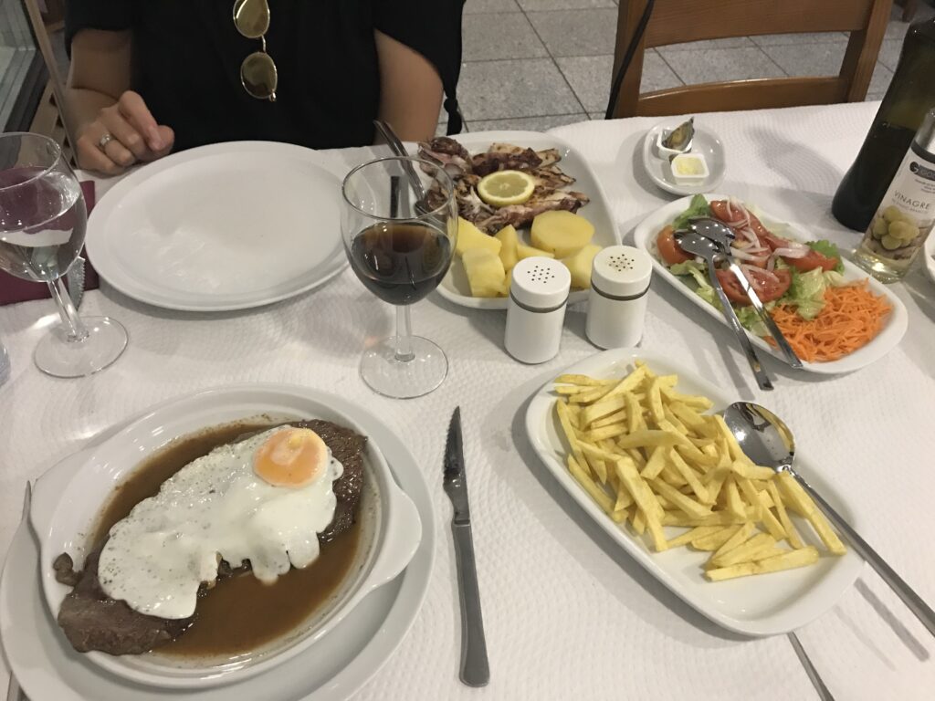 Völlig müde, erschöpft und durchgeschwitzt nahmen wir eine Dusche und machten einen Powernap. Um ca. 19 Uhr machten wir uns auf die Suche nach einem Restaurant, in einem Cafe kühlten wir uns mit einem Sagres ein wenig ab, denn es war noch immer 38 Grad! Nach einer Weile fanden wir ein gutes Restaurant und assen feines Fleisch und Fisch, anschliessend gab es noch einen kleinen Dessert.