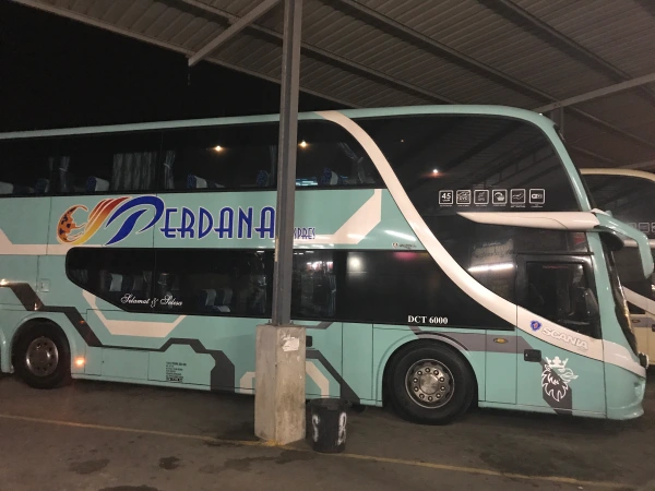 Bevor wir am Morgen um 11 Uhr auscheckten, genossen wir unser letztes Frühstück am Meer auf dieser wunderschönen Insel. Um 12 Uhr wurden wir vom Boot abgeholt, welches uns wieder zurück zum Hafen von Koala Besut fuhr. Am Hafen angekommen, wurden wir von einer Frau mit unserem Namensschild ziemlich hektisch empfangen und sie redete etwas von anmelden, weil wir in 15 Minuten los müssen. Wir waren leicht verwirrt, da wir den Bus nach Kota Bharu erst um 16:00 Uhr gebucht hatten. Naja dachten wir uns, dann sind wir wenigstens schon mal dort. Etwa 1,5 Stunden fuhren wir mit dem Bus nach Kota Bharu zum Bus Terminal. Dort hatten wir ca. 6 Stunden Wartezeit bis unser Nachtbus nach Mersing losfuhr. Das Gepäck konnten wir in einem kleinen Laden beim Terminal für 4 RM (95 Rappen) unterbringen, so dass wir die Wartezeit im Einkaufszentrum direkt neben dem Terminal verbringen konnten. Es war zwar irgendwie nicht sehr vertrauenswürdig aber unser Gepäck war noch da. Pünktlich um 20:30 fuhr unser Bus los. Die Sitze im Bus waren richtig bequem und man konnte diese sogar nach hinten stellen, so dass man ziemlich gut schlafen konnte.